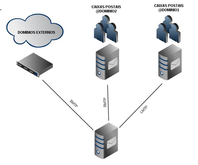 Recentemente precisei efetuar a configuração no Postfix para entregar mensagens em diferentes ambientes, na mesa rede corporativa são utilizados dois domínios, sendo um utilizando o Cyrus Imap e o outro utilizando o Exchange 2010. Além das entregas diferentes para os domínios internos as mensagens para domínios externos deveriam ser encaminhadas para um SMTP de borda, como o IBM Proventia.