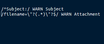 /^Subject:/ WARN Subject : /filename=\"?(.*)\"?$/ WARN Document Attachment :