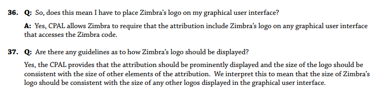 Então, vejamos a FAQ da Zimbra sobre a licença Open Source: