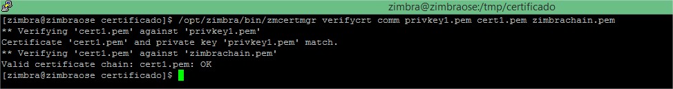 /opt/zimbra/bin/zmcertmgr verifycrt comm privkey.pem cert.pem CHAIN_COMPLETA.pem