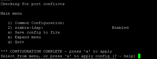 Assim que o menu for exibido, ele apresentará que o Zimbra está pronto para ser instalado, porém isso não se aplica, uma vez que ele não irá criar o diretório, e sim irá adicionar esse servidor ao LDAP já existente: