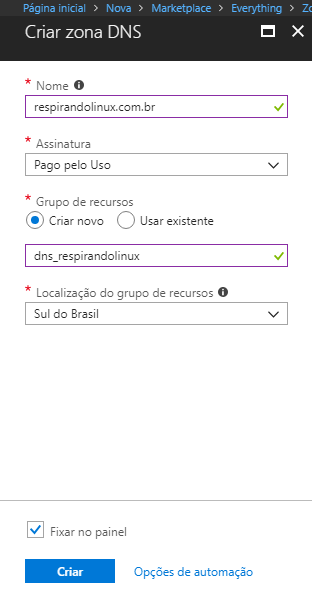 - Grupo de recursos (criar novo): dns_respirandolinux