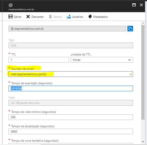Para este artigo, estamos criando uma zona DNS para hospedagem do domínio respirandolinux.com.br, com as seguintes configurações:
