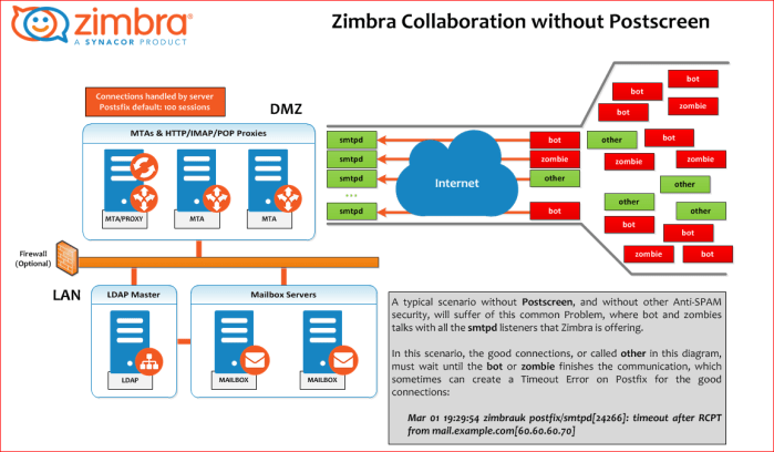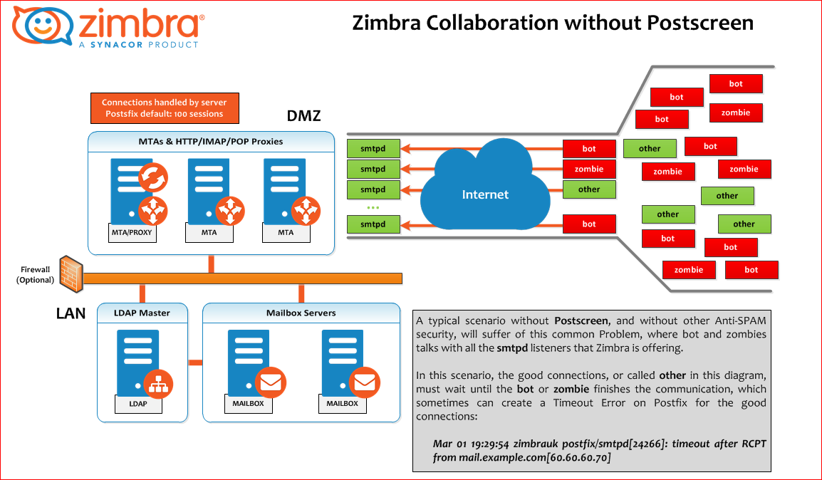 Um dos recursos bastante interessantes na proteção contra SPAM é o Postscreen, recurso do MTA do Zimbra, Postfix.
