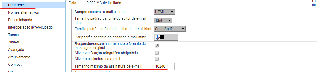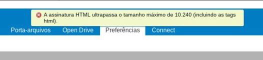 Isso ocorre porque por padrão o Zimbra limita o tamanho máximo da assinatura a 10240 caracteres e as tags HTML também são contabilizadas.