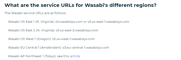 Fonte: https://wasabi-support.zendesk.com/hc/en-us/articles/360015106031-What-are-the-service-URLs-for-Wasabi-s-different-regions-