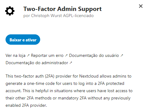O aplicativo “Two-Factor Admin Support” permite que o administrador gere um código de uso único para que o usuário possa acessar sua conta e configure novamente o seu segundo fator de autenticação.